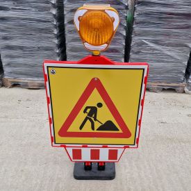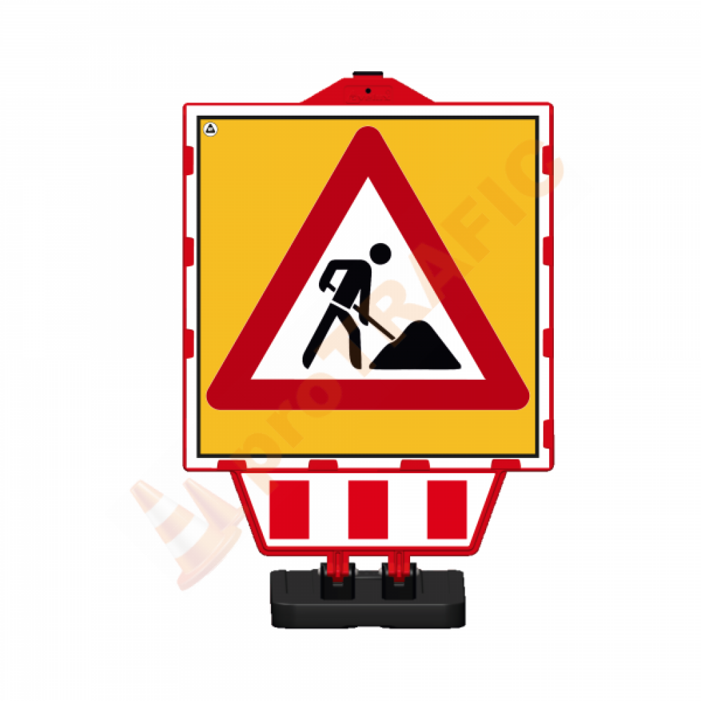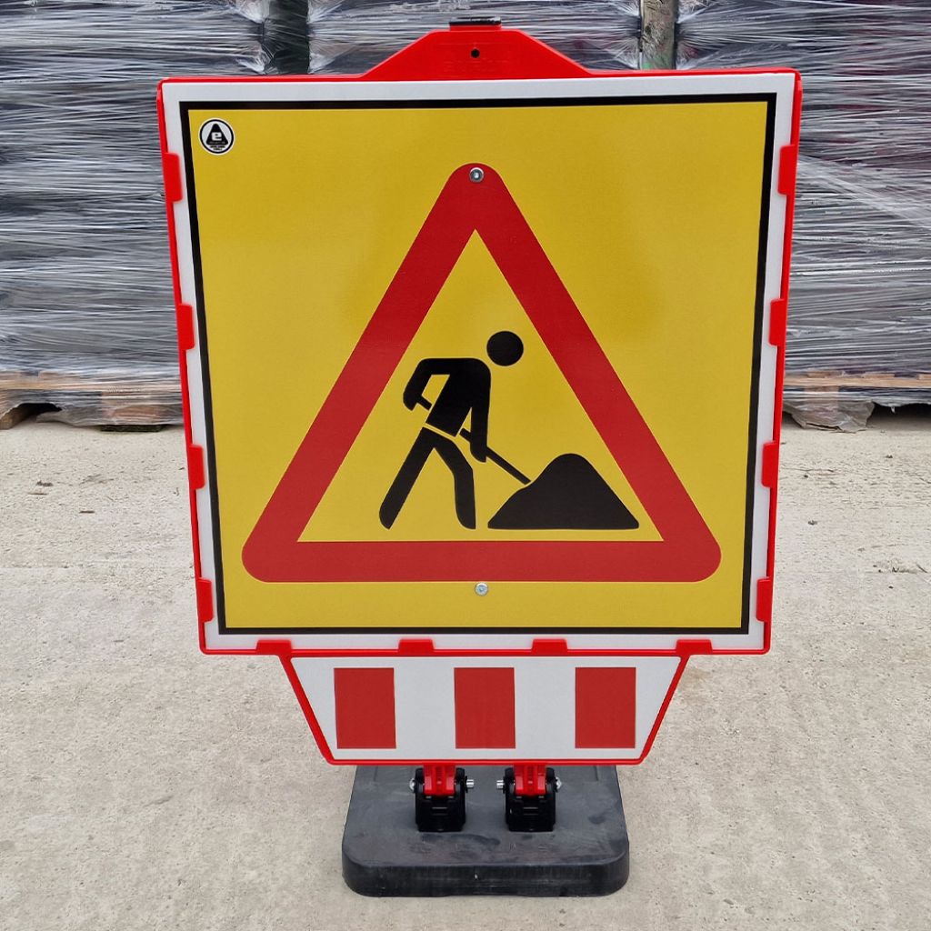 Baliza PVC pentru semnalizare lucrari - Drum in lucru este un panou ce ajută la semnalizarea lucrărilor. Baliza PVC pentru semnalizare lucrari - Drum in lucru este soluția ideală, această fiind confecționată din PPC/PVC ceea ce o face rezistentă la soare și ploaie. Datorită materialelor din care această baliză este confecționată această este ușor de transportat și manevrat.