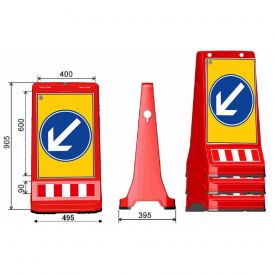 Baliza reflectorizanta pentru lucrari OCOLIRE STANGA, 7.50kg, H 90cm, folie fata 60x40cm