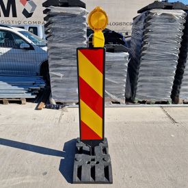 Baliza zone de lucrari, baza 15 kg, folie clasa 2 cu lampa cu baterie galbena