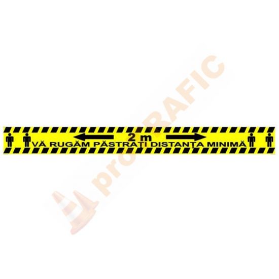 Banda autocolanta semnalizare distantare Va rugam pastrati distanta minima 2m