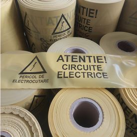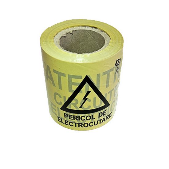 Banda semalizare Circuite Electrice, 150 mm x 500 m, culoare galben, fara fir este folosita pentru semnalizarea circuitelor electrice. Fabricata din material rezistent, ofera o vizibilitate ridicata si protejeaza zonele de lucrari. Este ideala pentru marcarea retelelor de circuite electrice subterane.