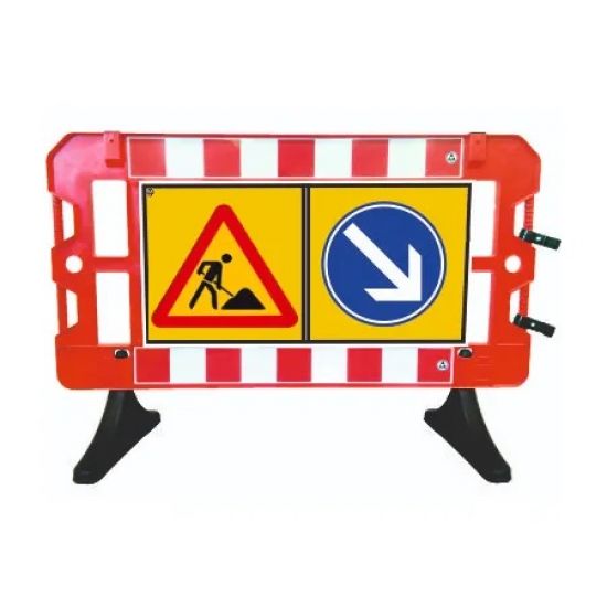 Aceste bariere lucrari au 4 folii reflectorizante, 2 indicatoare aplicate (Drum in lucru si ocolire dreapta), sisteme de legatura pentru prinderea acestora una de alta si 2 socluri pentru a infileta diverse indicatoare sau lampi de semnalizare.