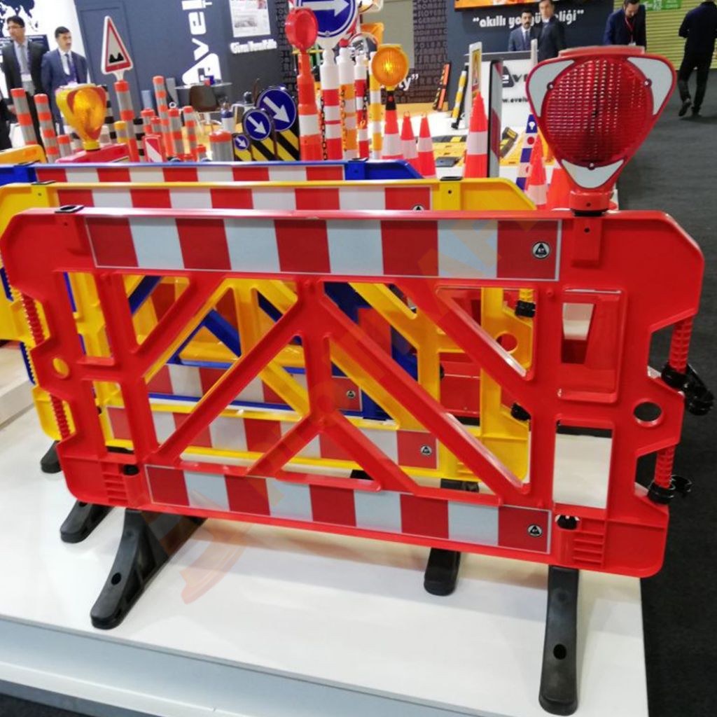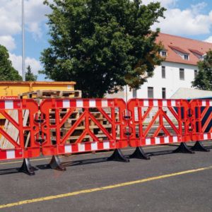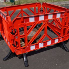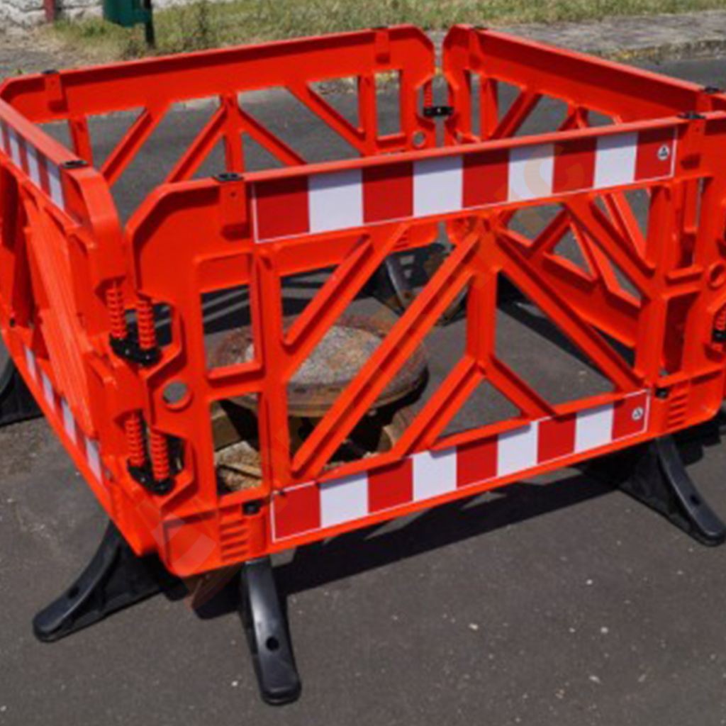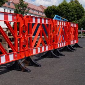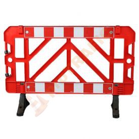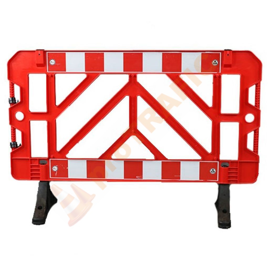 Bariera modulara pentru semnalizare lucrari 1500x1000 mm, rosie are o rezistentă sporită la soare sau ploaie, este ușor de transportat și îmbinat. Materialul din care sunt realizate, usurintă și practicitatea cu care sunt transportate și ridicate micsorează riscurile personalului și costurile.