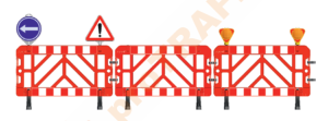 Bariera lucrari cu indicatoare, drum in lucru si ocolire stanga, Rosu, 1.5x1m, greutate 12.5 kg