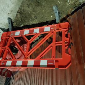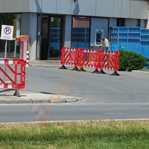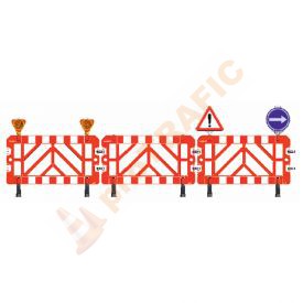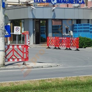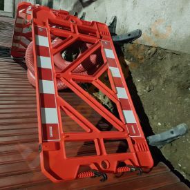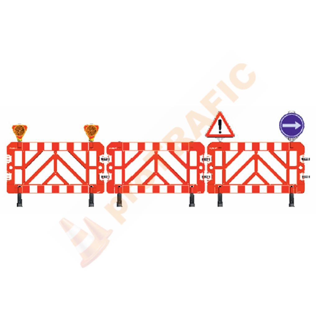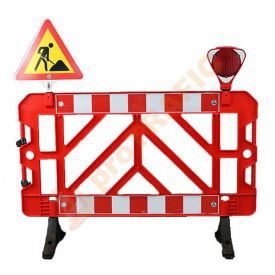 Acestor Bariera modulara pentru semnalizare lucrari 1500x1000 mm, rosie li se pot adăuga lămpi de semnalizare sau semne de circulație.