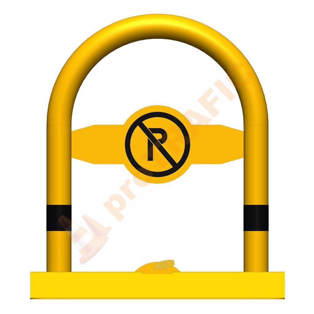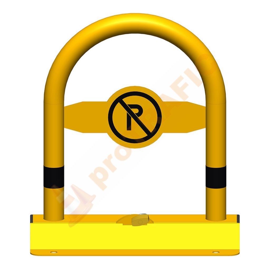 Blocator parcare tip arc Bolta, 350x450 mm, lacat, dibluri, holsuruburi, galben va ofera siguranta unui loc de parcare liber, fiind foarte usor de utilizat, avand un sistem de inchidere cu lacat.
