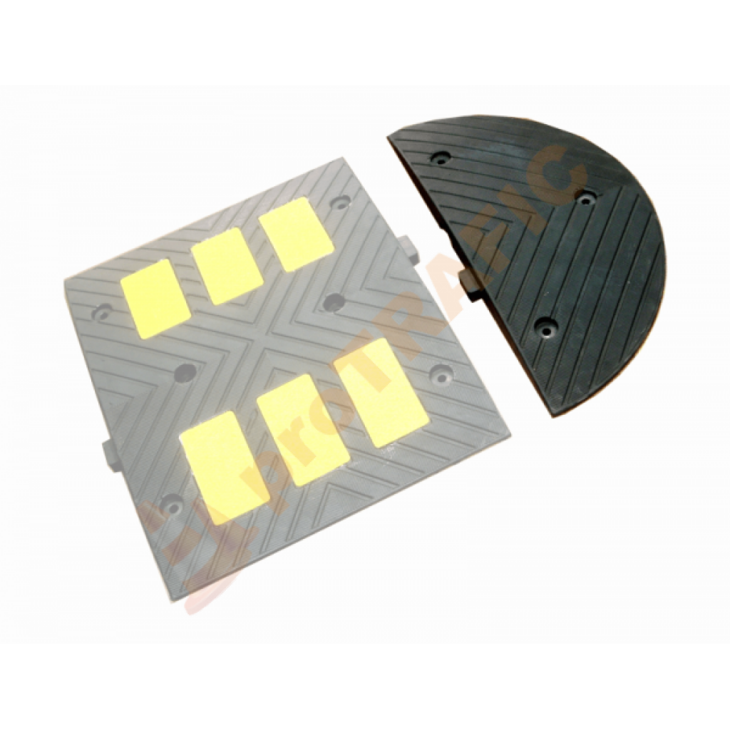 Capat limitator de viteza 300 x 600 x 45, din cauciuc cu inaltimea de 45mm ce ajuta la incetinirea vitezei traficului rutier cu pana la 30 km/h. Acest capat limitator de viteza 300 x 600 x 45, din cauciuc este folosit in apropierea scolilor, gradinitelor , in parcarile centrelor comerciale si in toate zonele unde se doreste limitarea vitezei.