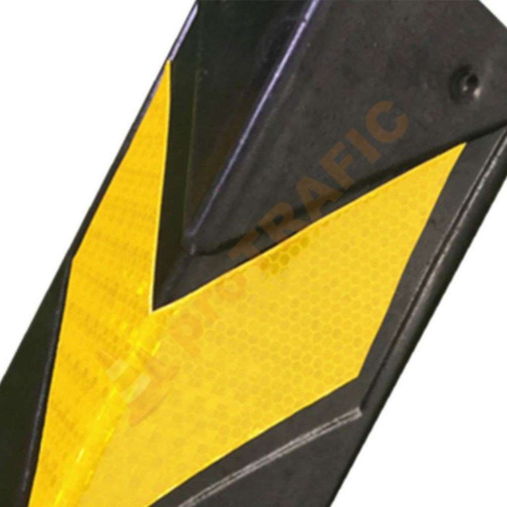 Coltar cauciuc protectie perete parcare este confecționat din cauciuc vulcanizat de culoare neagră cu pelicule reflectorizante galbene. Acest colțar perete este folosit cel mai adesea în parcările subterane pentru a proteja și semnaliza colțurile pereților.