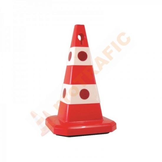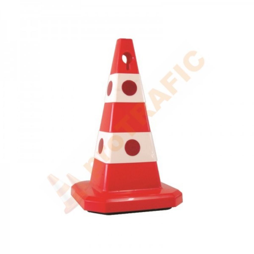 Con trafic 600 mm, cu catadioptri, din plastic cu greutate, dotat cu cârlig de transport. Con de semnalizare din Pvc este folosit pentru a delimita anumite zone pietonale sau rutiere. Acest con trafic 600 mm, cu catadioptri, din plastic cu greutate este rezistent la temperaturi scăzute și nu se sparg la lovire.