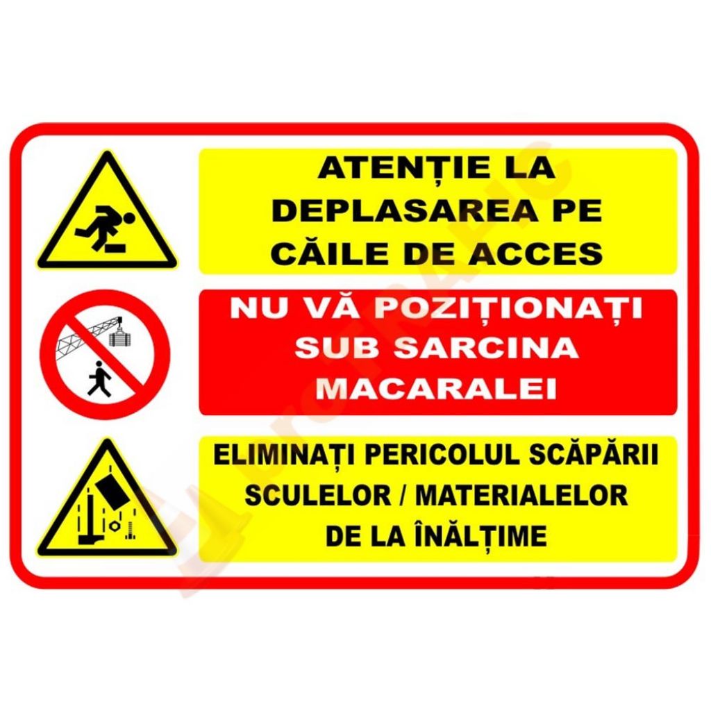 Indicator de securitate cu semne combinate Atentie la deplasarea pe caile de acces