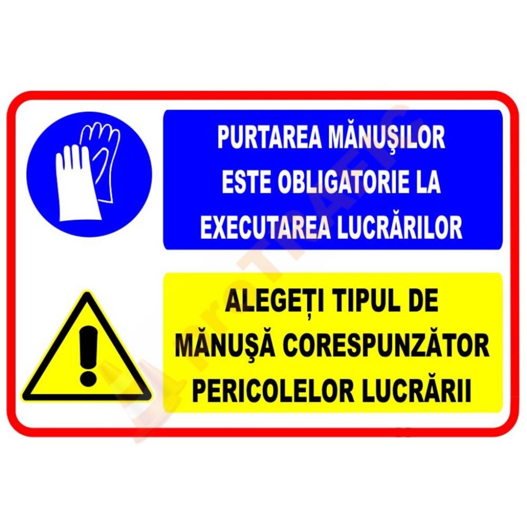 Indicator de securitate cu semne combinate Purtarea manusilor este obligatorie