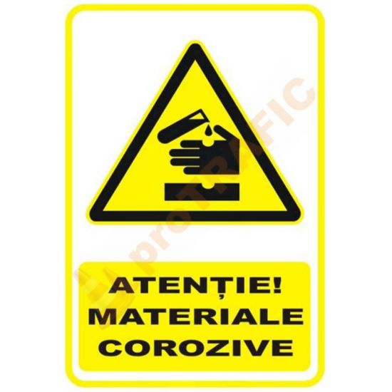 Indicator de securitate de avertizare 'Atentie materiale corozive'