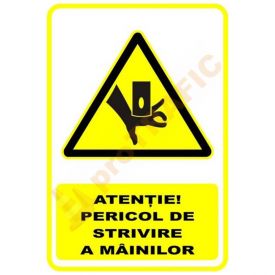 Indicator de securitate de avertizare 'Atentie Pericol de strivire a mainilor'