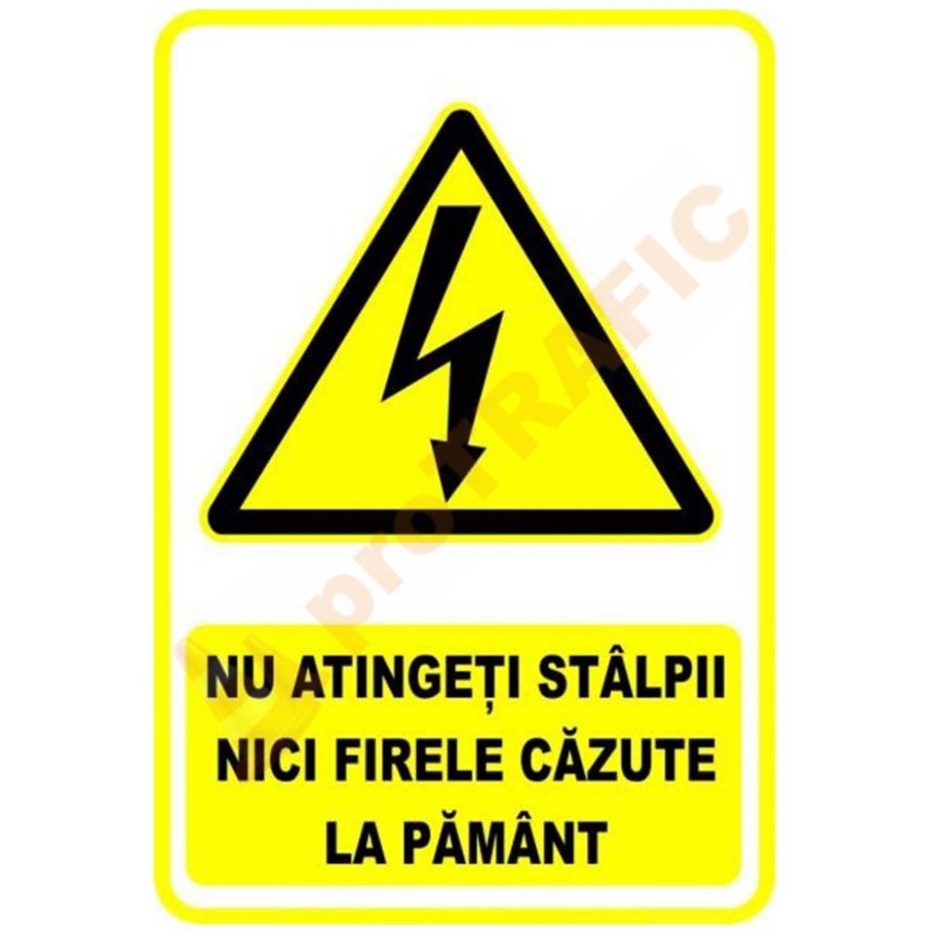 Indicator de securitate de avertizare 'Nu atingeti stalpii nici firele cazute la pamant'