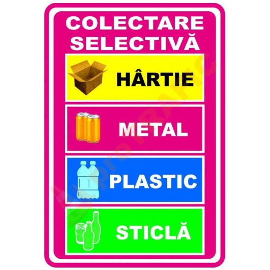Indicator de securitate de informare generala "Colectare selectiva Hartie Metal Plastic Sticla"
