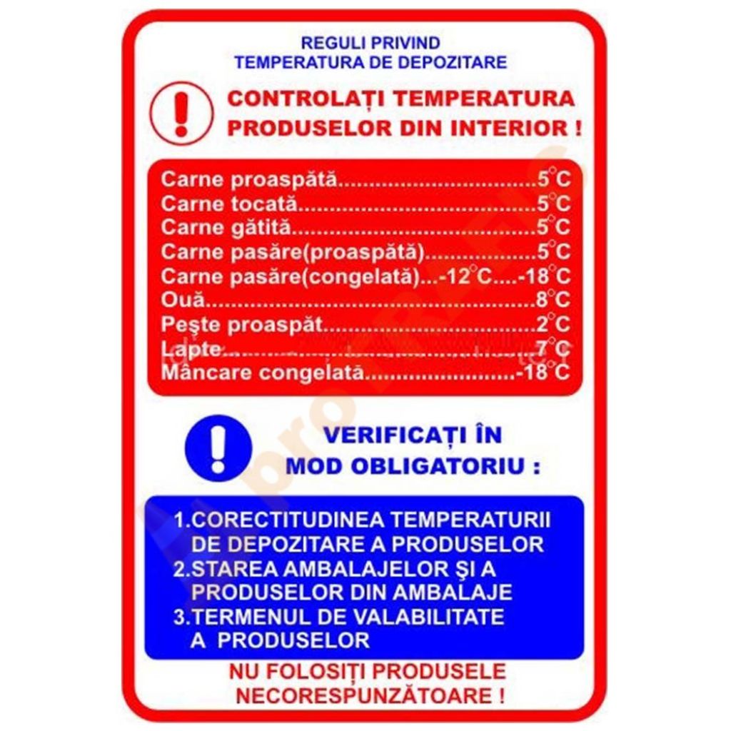 Indicator de securitate de informare generala 'Reguli privind temperatura de depozitare'