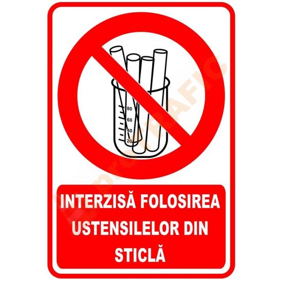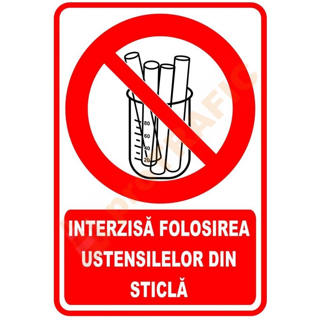Indicator de securitate de interzicere 'Interzisa folosirea ustensilelor din sticla'