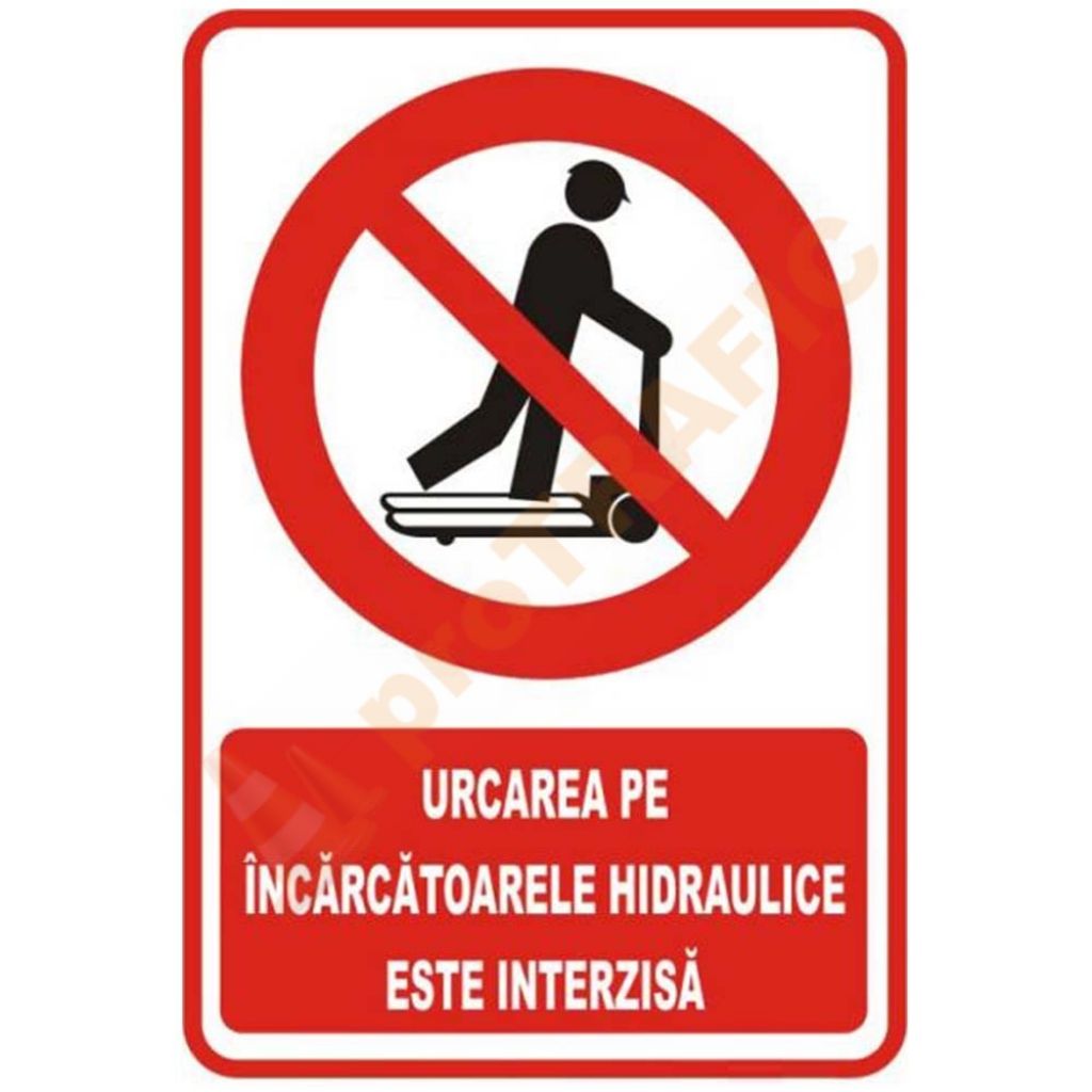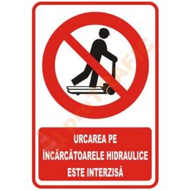 Indicator de securitate de interzicere 'Urcarea pe incarcatoarele hidraulice este interzisa'