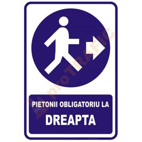 Indicator de securitate de obligativitate 'Pietonii obligatoriu la dreapta'