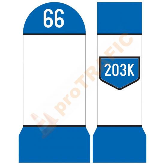 Folia reflectorizantă este aplicată pe trei fețe ale indicatorului kilometric (vizibil pentru conducătorii auto din ambele sensuri de circulație și perpendicular pe axul drumului).
