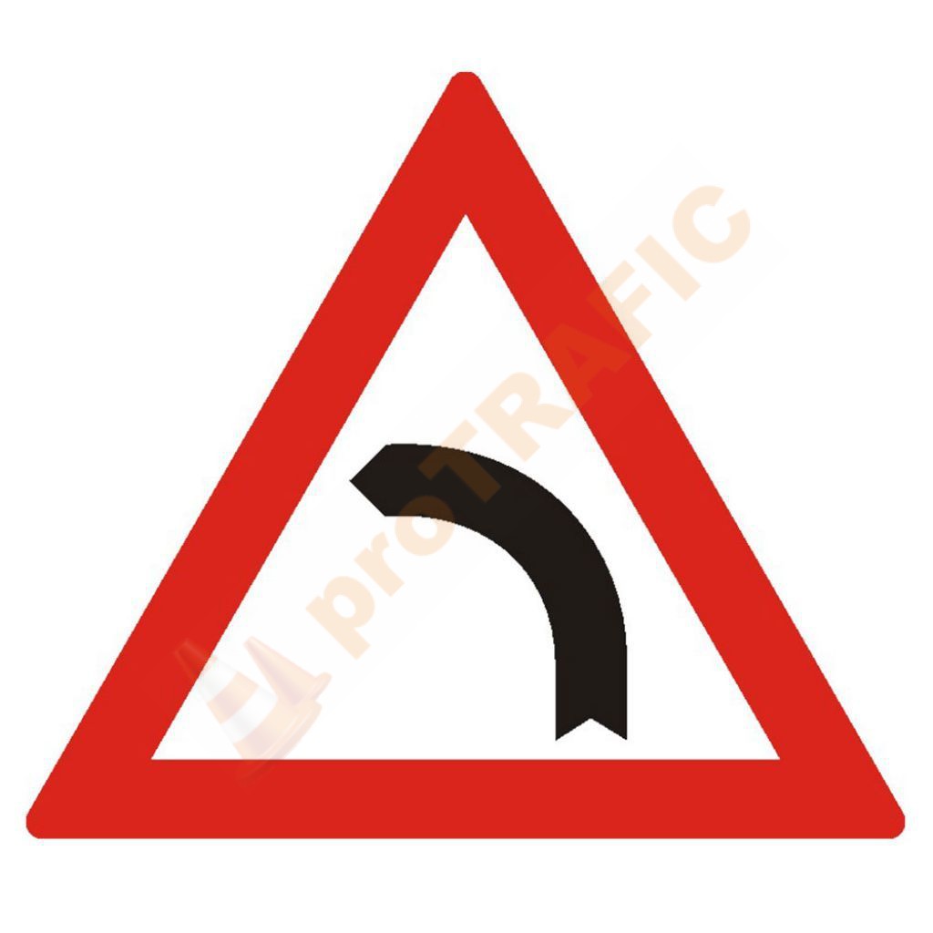 Indicator rutier avertizare A1 Curba stanga este amplasat la cel mult 200 m de o curbă la stânga. Conducatorul trebuie să circule cu viteză redusă în curbe, iar dacă vizibilitatea este redusă, toate manevrele (depășirea, oprirea, staționarea, mersul înapoi, întoarcerea) sunt interzise.