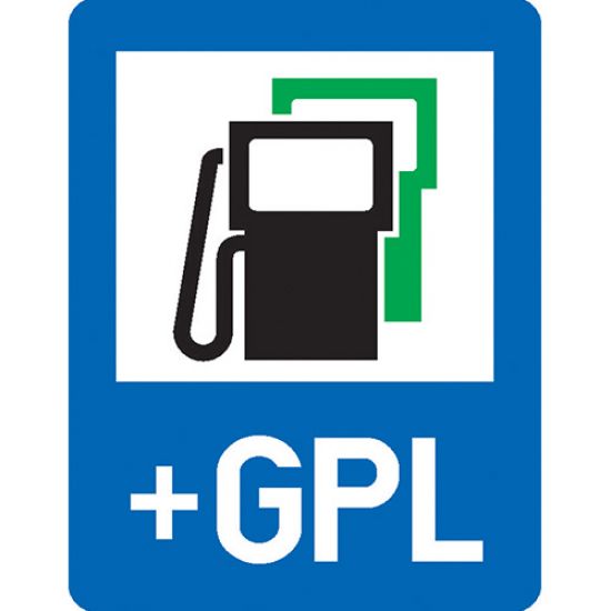 Indicator rutier de informare G20 Statie de alimentare cu carburanti, inclusiv benzina fara plumb si gaz petrolier lichefiat. Acest indicator este amplasat pe drumurile principale pentru a ghida soferii catre statii de alimentare care ofera aceste tipuri de carburanti.