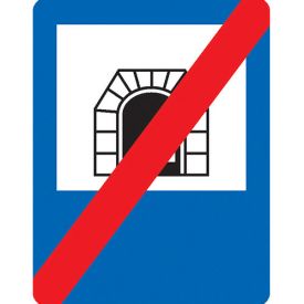 Indicator rutier de informare G39 Sfarsit de tunel semnalizeaza iesirea dintr-un tunel pe drumul public. Acest indicator are un design care ilustreaza intrarea stilizata a unui tunel, traversata de o linie rosie diagonala, indicand incetarea conditiilor speciale asociate circulatiei in tunel. Este amplasat la iesirea din tunel pentru a informa conducatorii auto ca pot reveni la conditiile normale de circulatie aplicabile pe restul drumului.