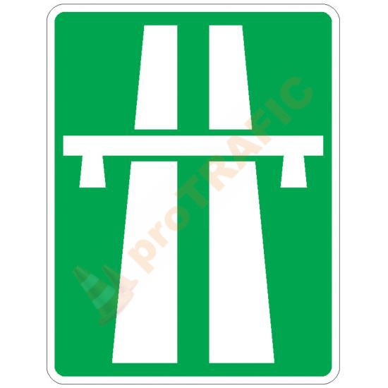 Acest indicator se întâlnește la intrarea pe o autostradă. Pe autostradă se circulă cu viteza minimă de 50 km/h și sunt interzise manevrele de întoarcere, staționare, mers înapoi, precum și circulația pe banda de urgență.