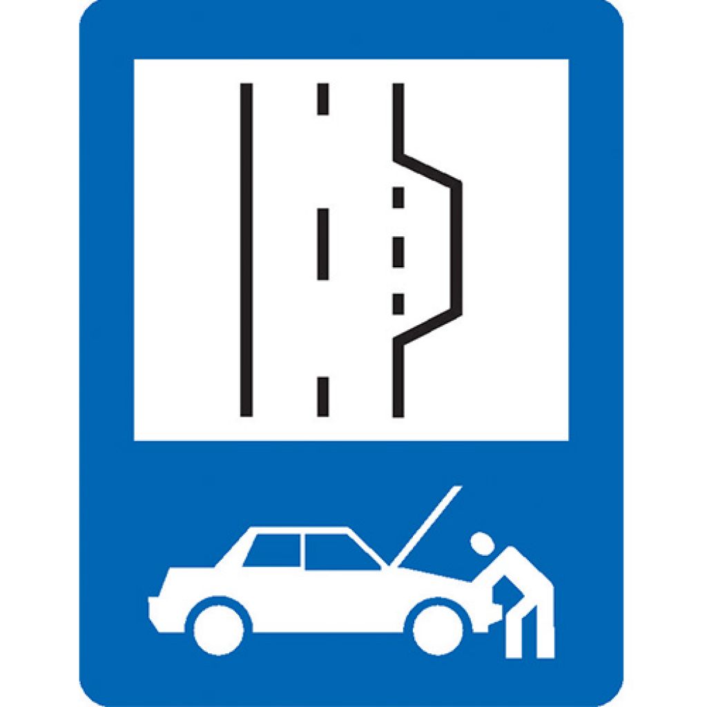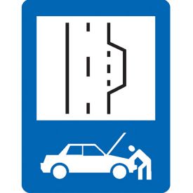 Indicatorul are forma dreptunghiulara, cu un fundal albastru si simboluri albe. Pictograma utilizata reprezinta de obicei o masina stilizata, indicand locul unde soferii pot opri in siguranta pentru a depana un vehicul defect. Este amplasat in zone unde exista astfel de refugii, avand rolul de a ghida soferii catre locurile unde pot solicita ajutor in caz de avarii ale vehiculului.