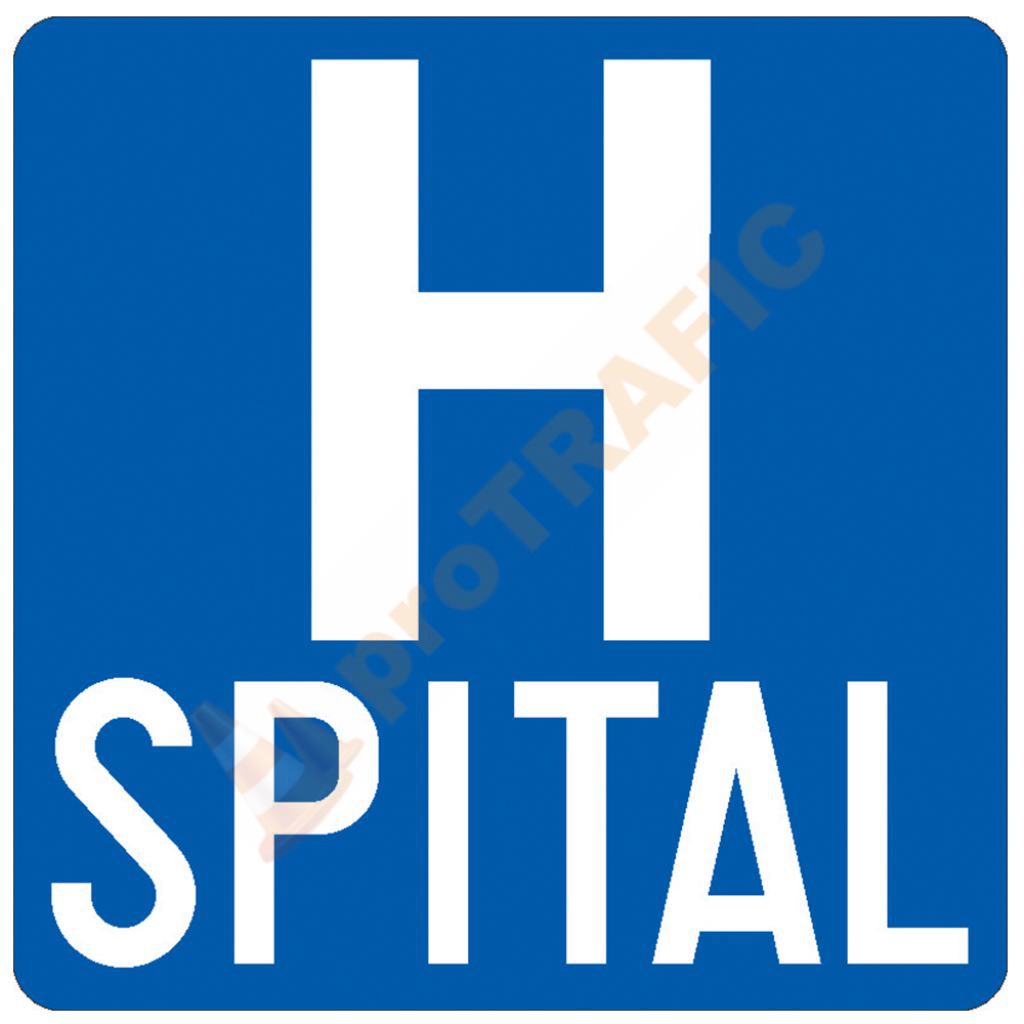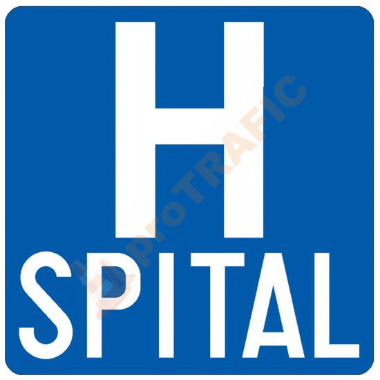 Indicatorul rutier se întâlnește în apropierea spitalelor pentru a informa conducătorii de vehicule în legătură cu existența unei unități medicale.