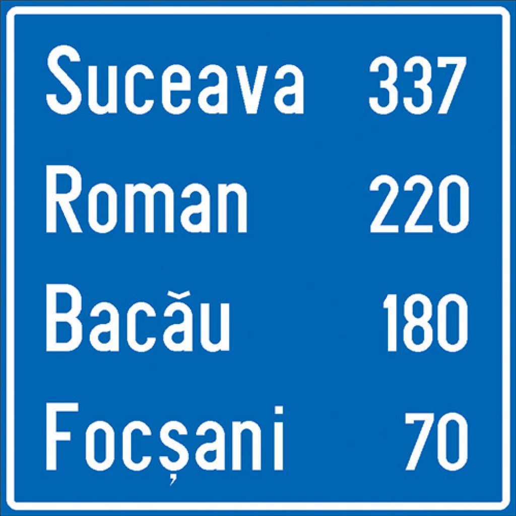 Indicator rutier de orientare F48 Confirmarea directiei de mers spre localitati mai importante si distantele pana la acestea