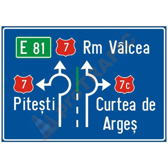 Indicator rutier de orientare F5A Presemnalizarea directiilor într-o intersectie de tip turbogiratie