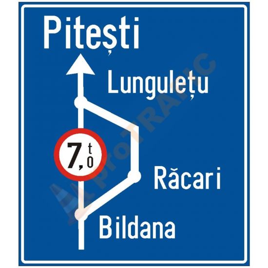 Indicator rutier de orientare F7 Presemnalizarea traseului de urmat în cazul unei restrictii de circulatie