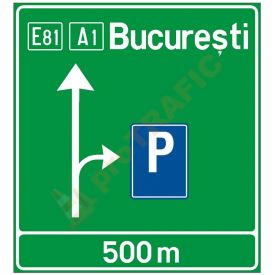 Indicator rutier de orientare F8 Presemnalizare pe autostrada pentru parcare