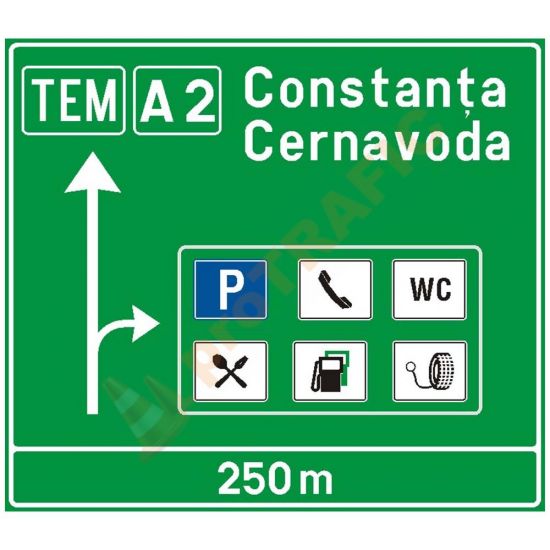Indicator rutier de orientare F9 Presemnalizare pe autostrada pentru spatiu de servicii