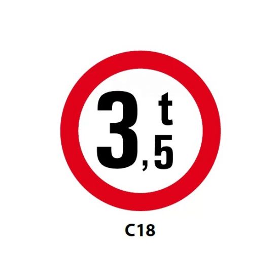 Indicator rutier interzicere sau restrictie C18 Accesul interzis vehiculelor având masa mai mare de 3.5 t poate fi intalnit pe sectorul de drum pe care este interzis accesul vehiculelor cu o masa mai mare decat cea inscriptionata pe panou, precum si in intersectia care il precede. In cel de-al doilea caz, indicatorul este insotit de un panou aditional pe care este precizata distanta pana la locul periculos.