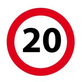 Acest Indicator rutier interzicere sau restrictie C27 Limitare de viteza 20km/h este montat pe sectorul de drum unde este necesara limitarea vitezei de circulatie a vehiculelor. Zona de actiune incepe din momentul in care vehiculul ajunge la indicator si se termina la intalnirea indicatorului „Sfarsitul limitarii de viteza” sau „Sfarsitul tuturor restrictiilor”. Daca indicatorul este insotit de un panou cu numele localitatii, atunci limita de viteza este valabila pe intreaga localitate.