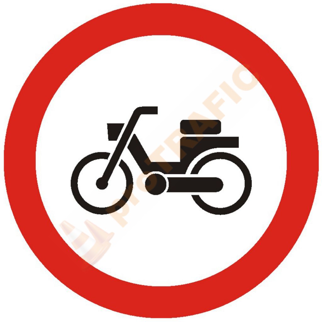 Indicator rutier interzicere sau restrictie C6 Accesul interzis ciclomotoarelor/mopedelor Sisteme de prindere fara suruburi