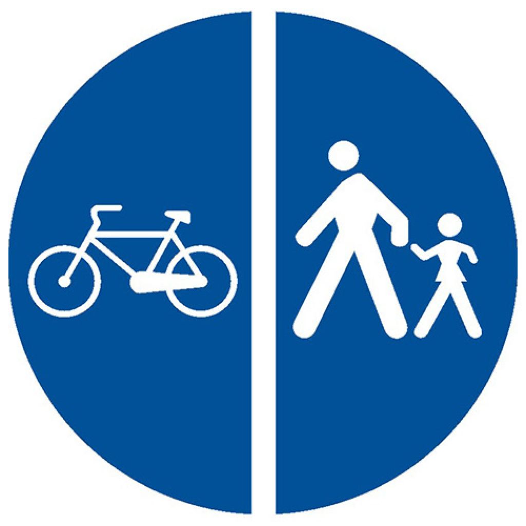 Indicator rutier obligare D12 Delimitarea pistelor pentru pietoni de cele destinate bicicletelor si ciclomotoarelor