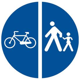 Indicator rutier obligare D12 Delimitarea pistelor pentru pietoni de cele destinate bicicletelor si ciclomotoarelor marcheaza inceputul unui sector de drum rezervat circulatiei pietonilor, bicicletelor si mopedelor, cu obligatia de a respecta pista specifica fiecarui tip de utilizator.