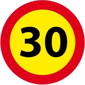 Are forma circulara, fundal galben cu margine rosie si cifre negre care indica viteza maxima permisa in kilometri pe ora. Este utilizat in zone cu lucrari, conditii speciale de drum sau alte situatii care necesita reducerea vitezei.