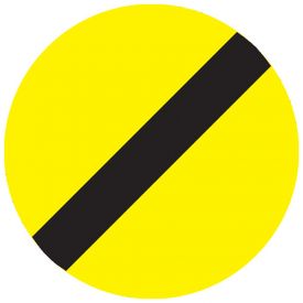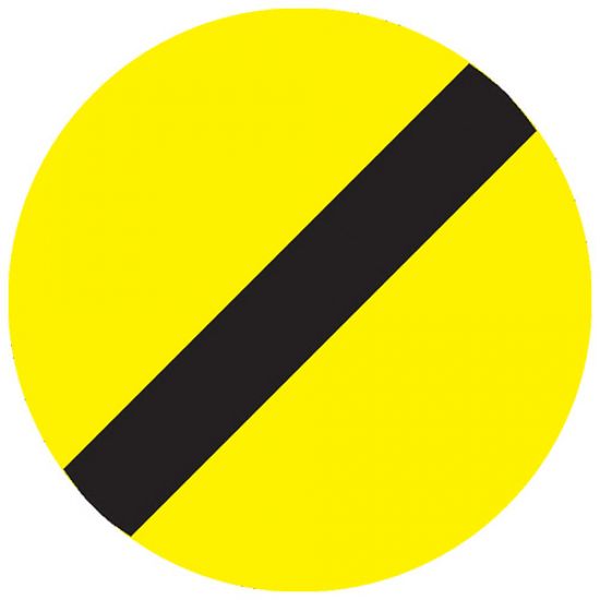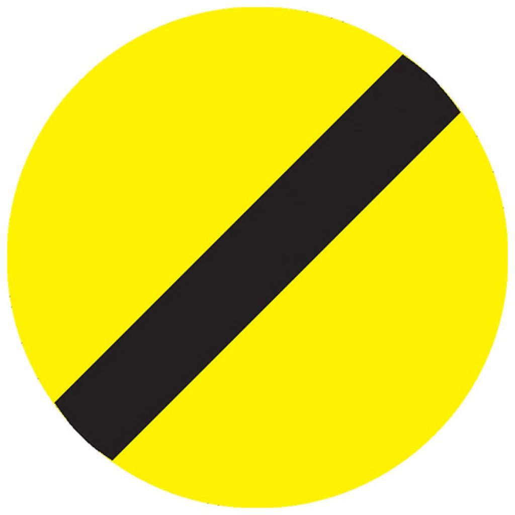 Are forma circulara, fundal galben cu margine rosie si text negru, semnalizand ca restrictiile temporare au fost ridicate. Este utilizat pentru a informa soferii ca pot reveni la conditiile normale de trafic.