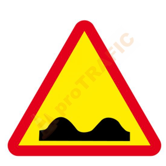 Aceste indicatoare rutiere, se întâlnesc de regulă pe sectoarele de drum pe care se execută lucrări. În acest caz, conducătorii auto sunt avertizați că urmează un sector de drum cu denivelări.