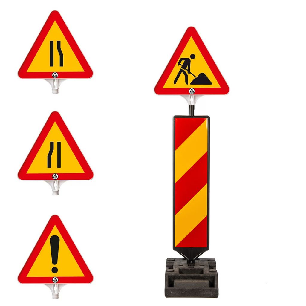 Acest Kit baliza directionala, folie cl 2, baza 15 kg, cu indicator plastic triunghiular sunt echipate cu indicatoare triunghiulare cu diferite semne ce au aplicata folie reflectorizanta.