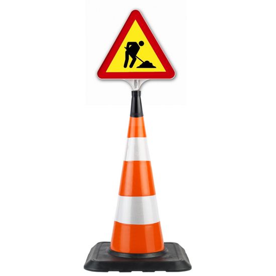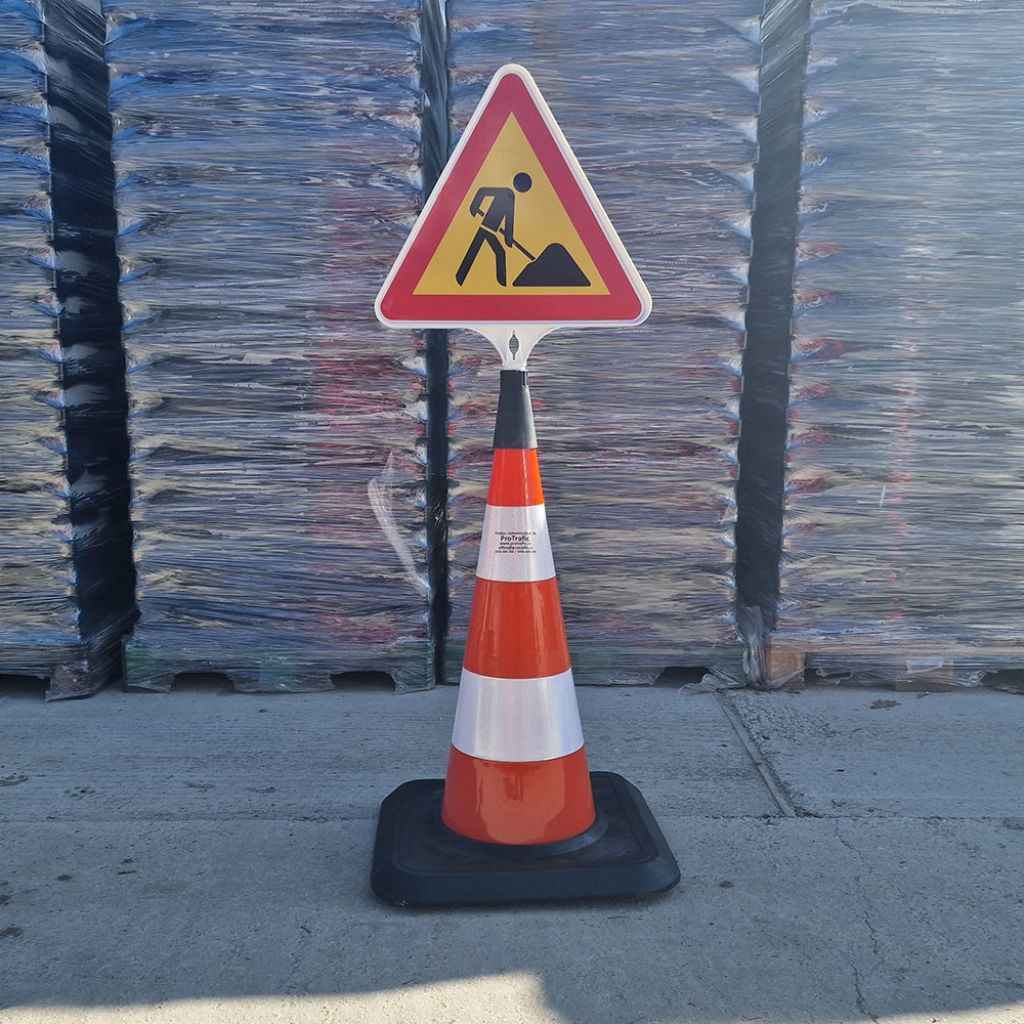 Kit con 750mm cu greutate si indicator Drum in lucru sunt echipamente esentiale pentru siguranta in trafic, fabricate din cauciuc durabil.