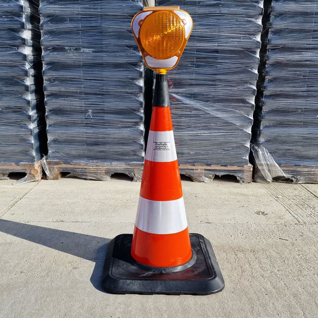 Kit con 750mm cu greutate si Lampa solara galbena sunt echipamente esentiale pentru siguranta in trafic, fabricate din cauciuc durabil.