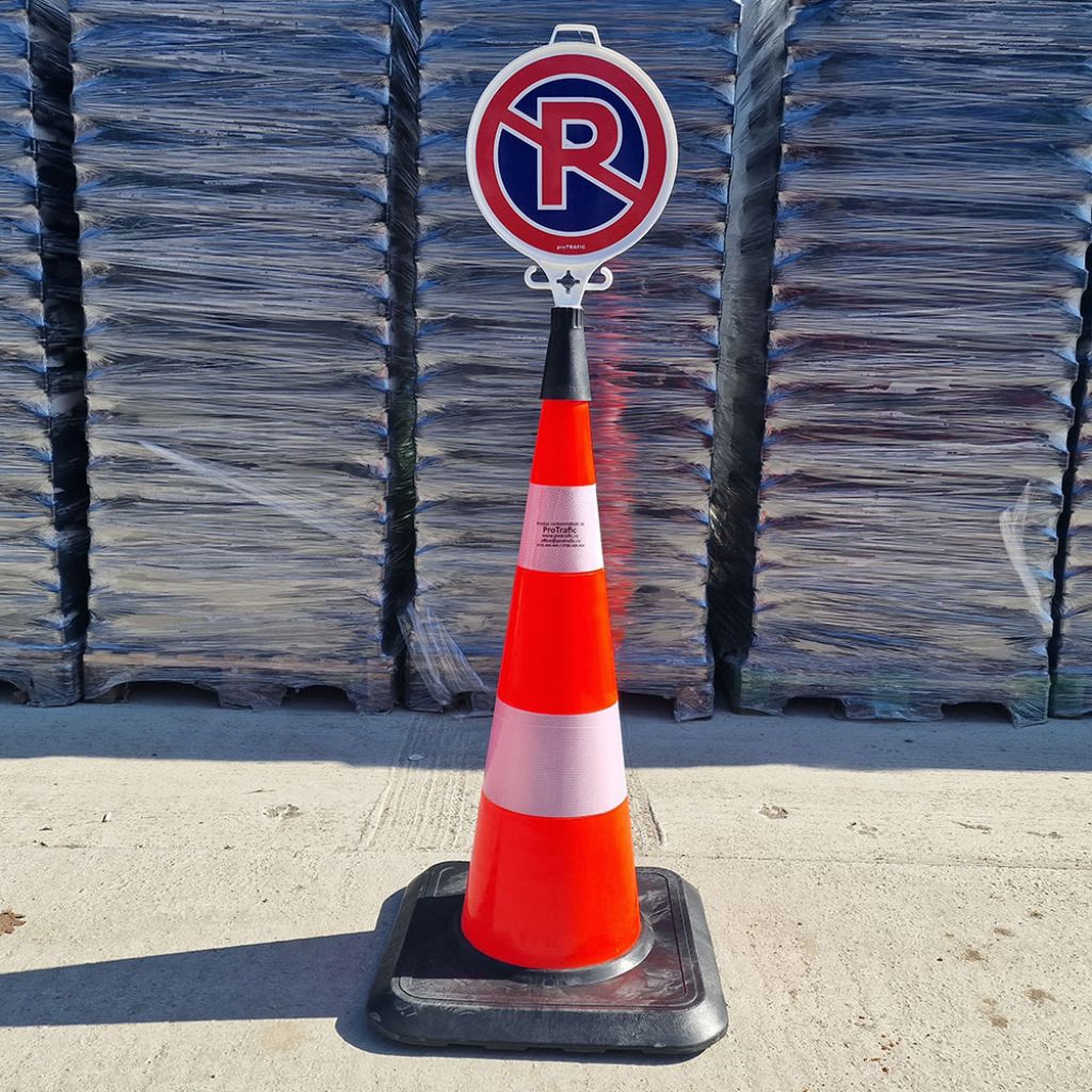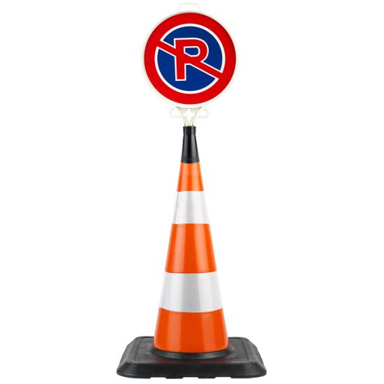 Conul este mare, inalt, vizibil pentru orice loc de parcare. Greutatea din partea inferioara il face stabil si placuta din partea superioara arata clar ca parcarea este interzisa in locul respectiv unde este amplasat. Recomandam acest ansamblu. Livrarea a fost rapida.
