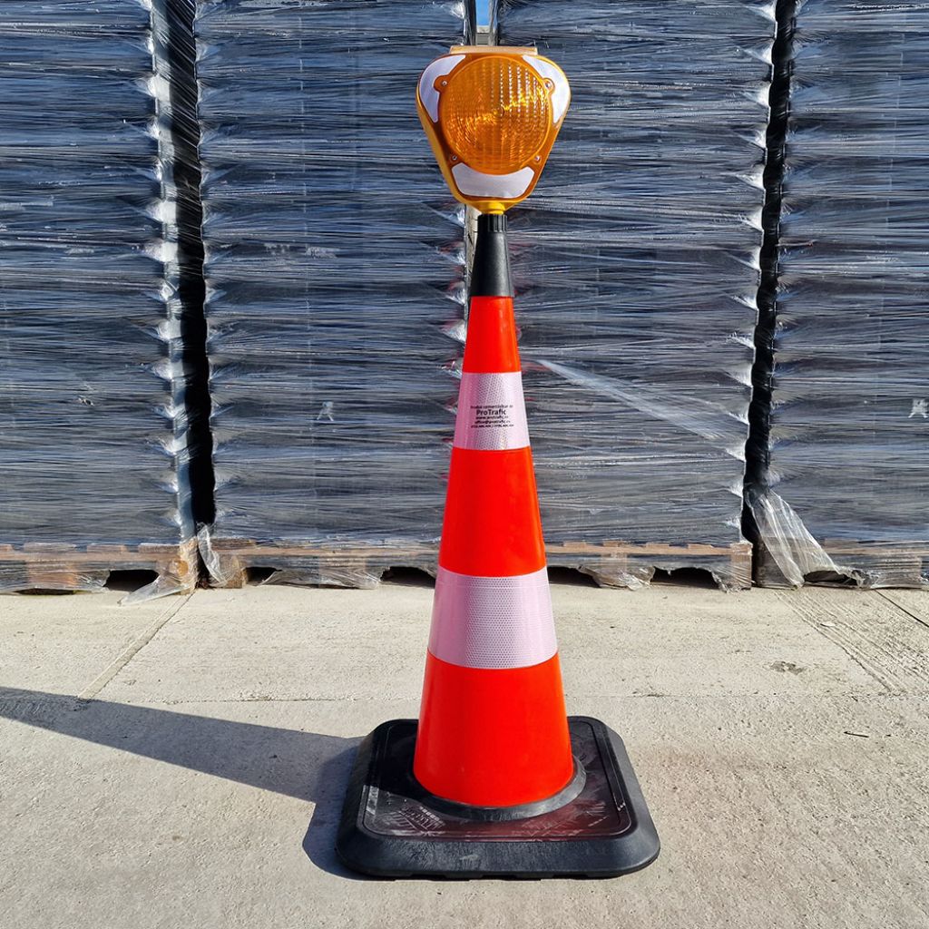 Lampa de sus se incarca la lumina de la soare pe timpul zilei si noaptea se vede foarte bine. Folia relfectorizanta de la conuri se vede foarte bine. Baza conului este destul de grea si sta bine pe con