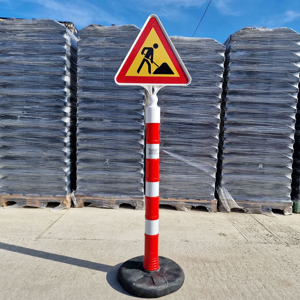 Kit stalp antiparcare 1100mm, cu baza 6,5 kg si indicator plastic Drum in lucru este un echipament de dirijare si semnalizare fabricat dintr-un plastic rezistent conceput pentru a rezista la uzura si conditiile atmosferice variate. Baza de cauciuc adauga greutatea necesara pentru a mentine stalpul in pozitie veritcala si pentru a impiedica rasturnarea acestuia in conditii de vant sau impact. Este utilizat la marcarea diferitelor spatii, ghidarea traficului sau pentru alte scopuri practice la interior sau exterior.