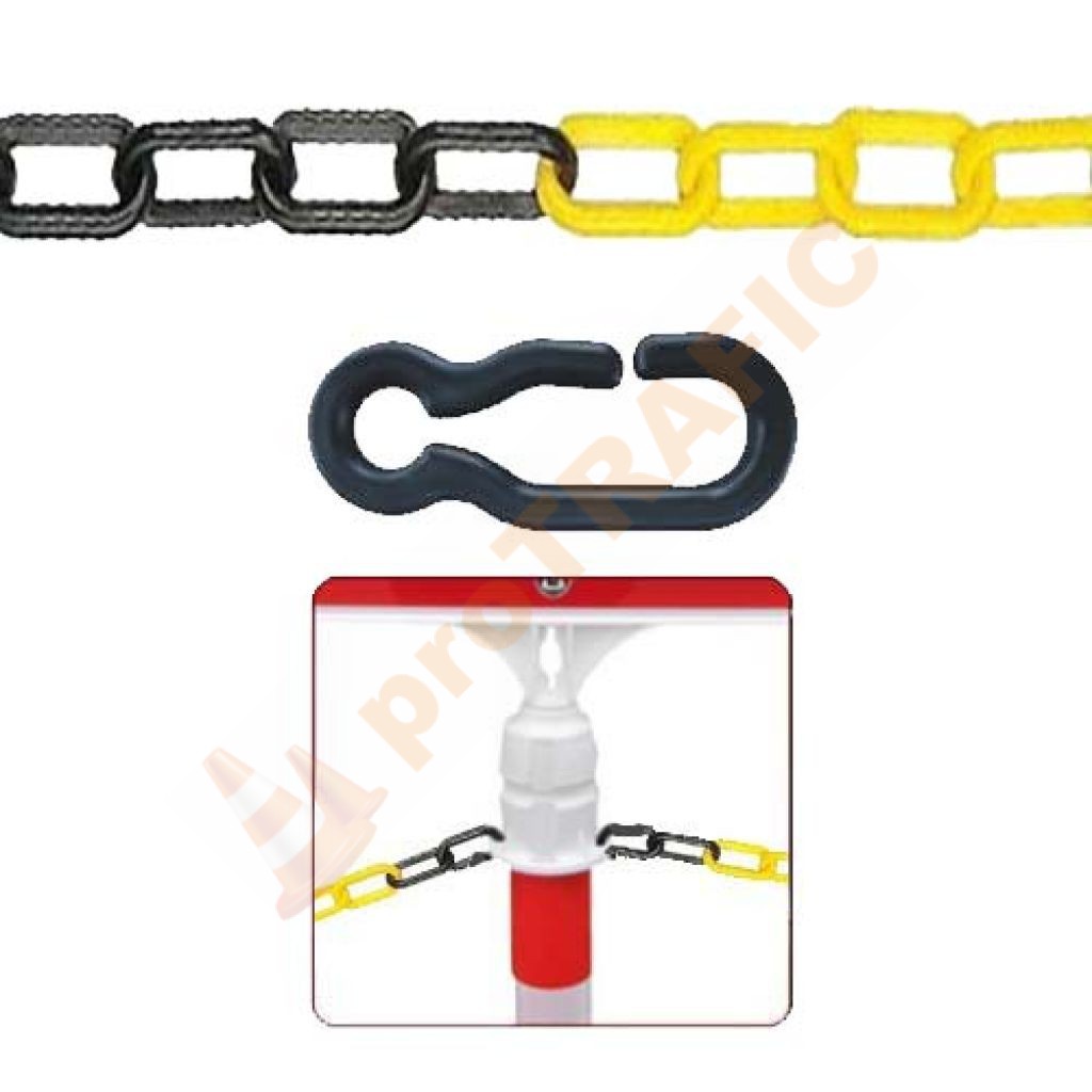 Lant plastic Galben Negru 1 m folosit la delimitarea zonelor cu lucrări, a parcărilor dar și în scop ornamental.